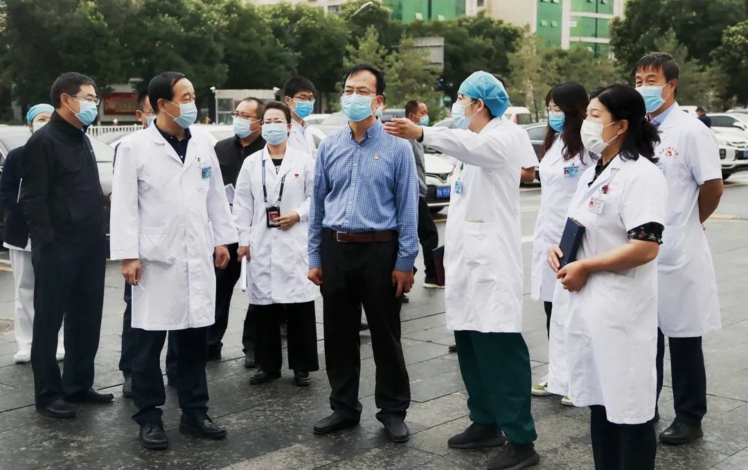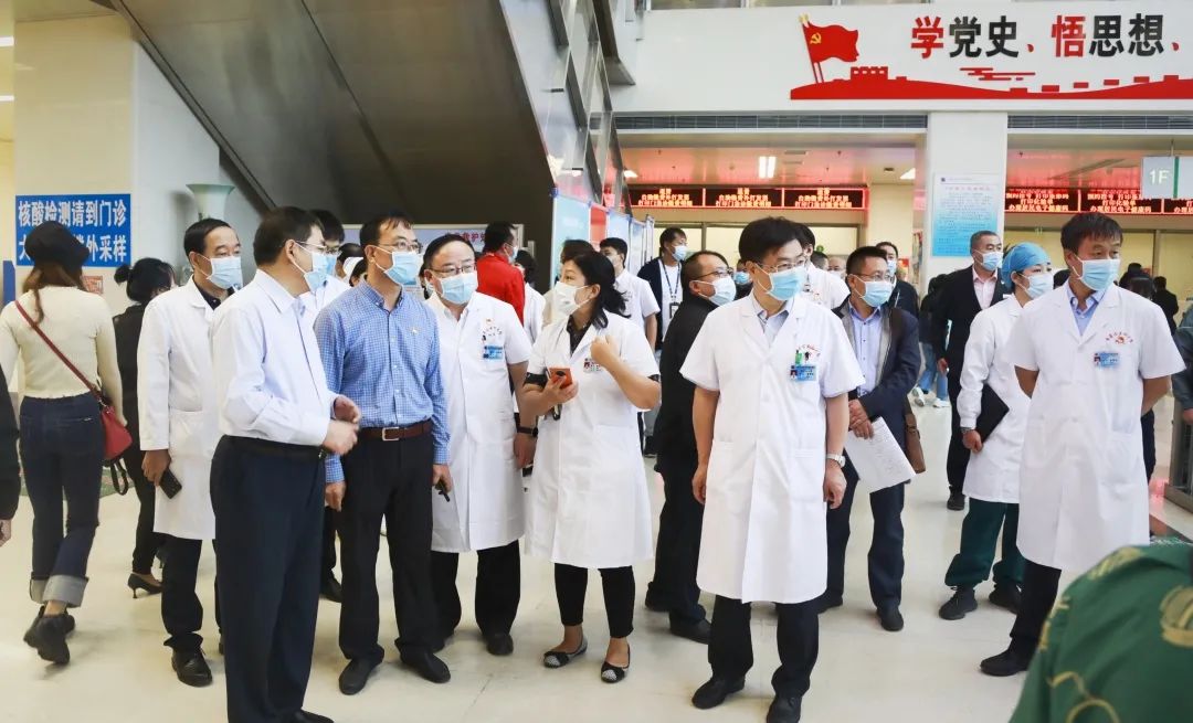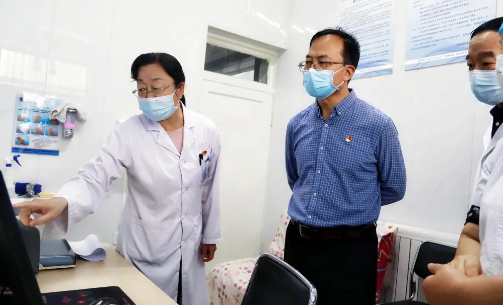 苏振荣一行实地察看了预检分诊、门诊诊室、出入病房的患者和陪同人员管理情况、医疗废弃物处理、核酸采集点的秩序管理和工作人员防护情等情况,特别是对发热门诊及留观病房进行了详细检查,对发热门诊工作流程进行了详细询问,仔细询问了医院职工接种新冠疫苗情况。