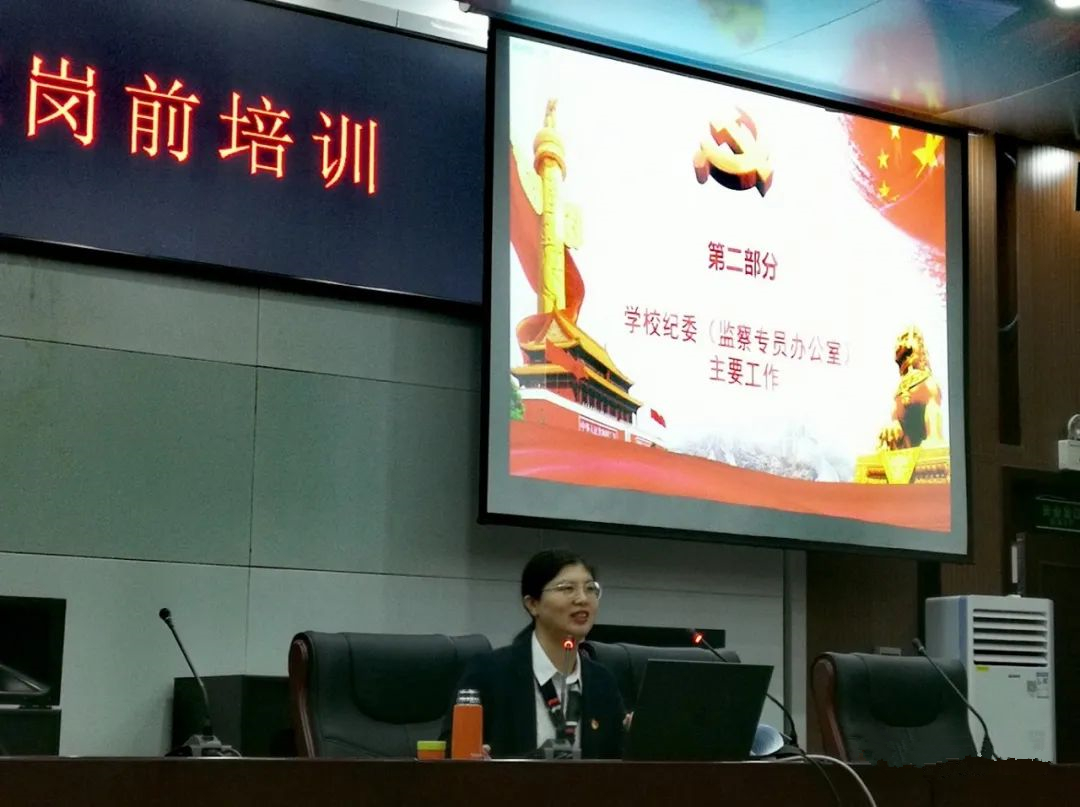 学校纪委(监察专员办公室)科长薛蕾同志作了题为《加强体制机制建设营造良好政治生态》的专题培训。主要从学校纪委(监察专员办公室)组织架构、人员配置、工作职责、工作内容等方面进行了详细的介绍,使新入职员工对学校纪委(监察专员办公室)的总体情况有了全面的了解与认识。