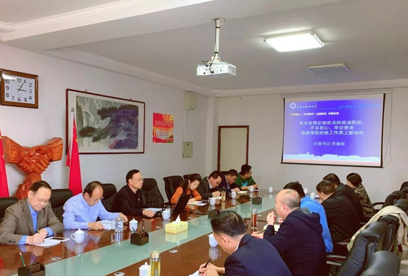 会上,学校纪委书记苏振荣作题为《充分发挥高校纪检部门的政治职能 不忘初心 牢记使命 推进学校纪检工作再上新台阶》的“不忘初心、牢记使命”主题教育专题党课。他围绕“强化高校纪检监察监督功能,推进纪检监察体制改革;用好调查研究这个传家宝,推进学校全面从严治党与党风廉政建设工作;认真履职尽责,推进学校现代大学体制建设与校园廉政文化建设”等方面,结合学校“不忘初心、牢记使命”主题教育和纪检监察工作做了深入、细致的讲解。重点就全校纪检干部如何解决好“为什么监督”,“监督什么”,“如何监督”的问题做了详细阐述。