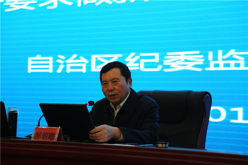 按照学校纪委2019年落实全面从严治党工作总体安排,3月15日下午,学校邀请了自治区纪委监委宣传部部长郝朝暾同志为全校党员干部作了专题培训。学校党委书记乌兰同志主持了培训会。学校党委委员,纪委委员,处级以上干部,机关、后勤科级干部,纪检监察审计干部和党支部书记参加了培训。