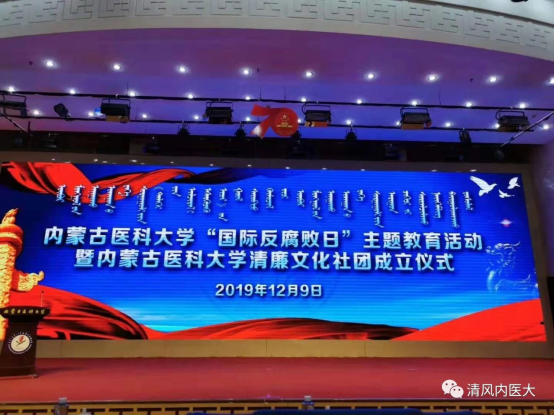 12月9日上午,学校纪委、团委在交流中心多功能厅举办了“国际反腐日”主题教育活动暨清廉文化社团成立仪式。