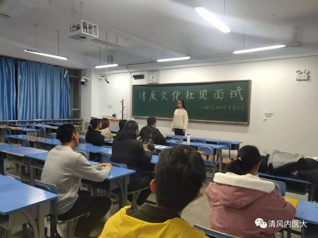 社团从2019年11月1日开始招新,内蒙古医科大学清廉文化社团首次在全校师生面前揭开神秘面纱。社团采取多种招新方式。在线上,我们通过内医大告白墙,内蒙古医科大学社团联合会,QQ空间等广泛宣传;在线下,我们在生活区广场向全校学生介绍我们的社团,通过在南北楼,大食堂,各个宿舍楼门前张贴迎新海报来吸引大家,让更多的人了解到内蒙古医科大学清廉社团。2019年11月17、18日晚清廉社在北楼进行面试,从众多的志同道合的“清廉之士”中找到适合清廉文化宣传的19级小萌新。在经过规定的流程选出各部门部长后,我们的大家庭初步集结完毕。内蒙古医科大学清廉文化社团招新工作圆满完成。