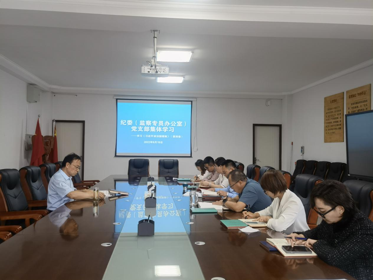 按照党委宣传部《关于认真组织学习<习近平谈治国理政>(第四卷)的通知》(内医党宣﹝2022﹞7号)及机关党委的要求,纪委(监察专员办公室)党支部精心安排部署,组织全体党员于2022年7月18日-9月19日通过个人自学、集中领学、线上线下相结合等方式开展《习近平谈治国理政》(第四卷)的学习。