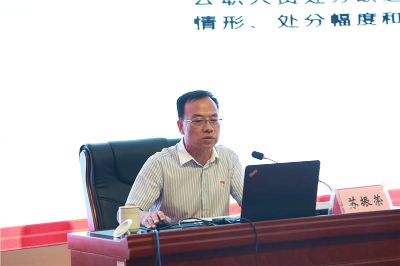会上,学校党委委员、纪委书记、自治区监委驻内蒙古医科大学监察专员苏振荣作题为《学法懂法 做知行合一的纪检人》的讲座,对《中华人民共和国公职人员政务处分法》进行详细解读,并对下一步工作进行部署。他强调,一要加强理论学习,提高政治站位。纪检监察干部要有深厚的理论功底,坚定的政治立场,过硬的业务水平,时刻把全校师生员工的利益放在心上,敢于同违法乱纪的行为作斗争。二要坚持履职尽责,强化使命担当。基层纪检监察工作担负着维护党的纪律、协助基层党组织加强全面从严治党、加强党风廉政建设和组织协调反腐败工作的重要职责,要按照自治区纪委监委“精准监督年”要求,将监督执纪“四种形态”运用到实际工作中去,聚焦主责主业,严格监督执纪问责。三要紧抓纪律教育,提升工作成效。通过开展党纪培训,强化引导党员干部不断增强纪律意识;通过加大警示教育、以案促改力度,以案为鉴、对照警醒,用身边事教育身边人,强化震慑效果;依托学校廉政文化平台加大宣传教育力度,弘扬清风正气,为推动学校全面从严治党营造良好氛围。